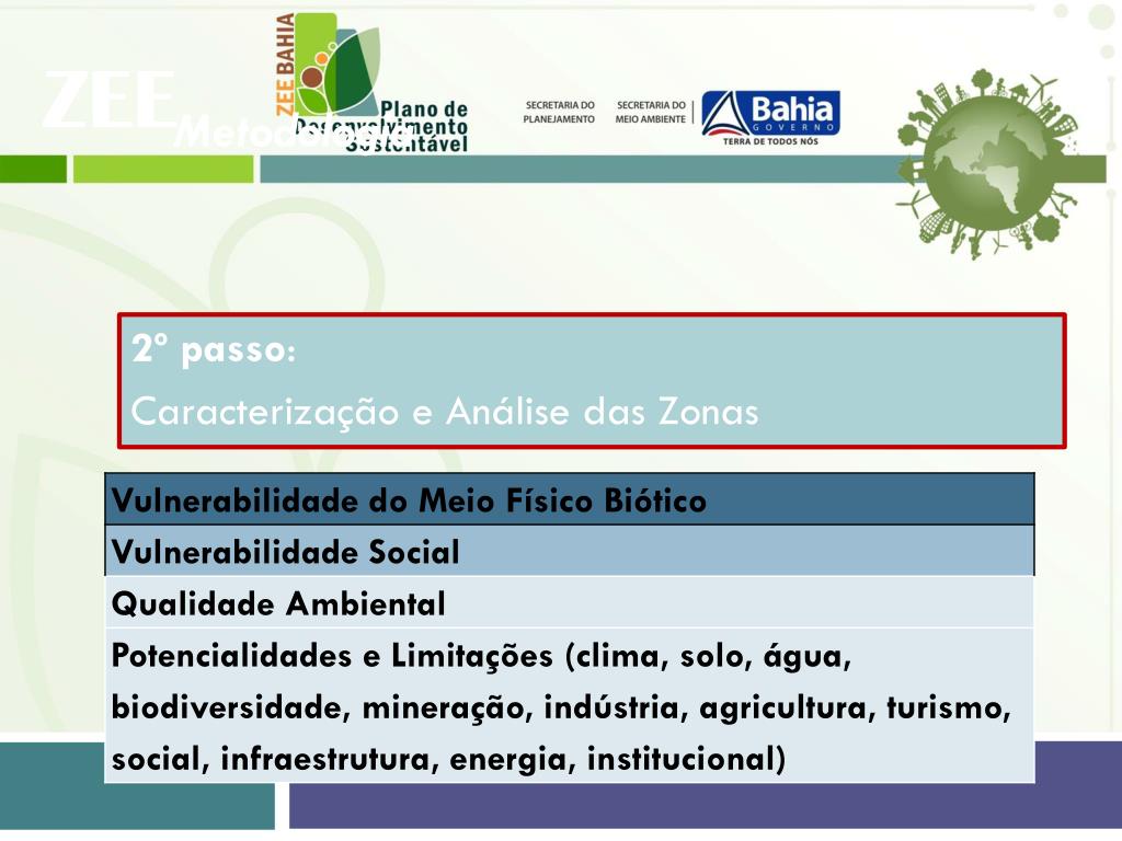 ZEE Metodologia 2º passo: Caracterização e Análise das Zonas