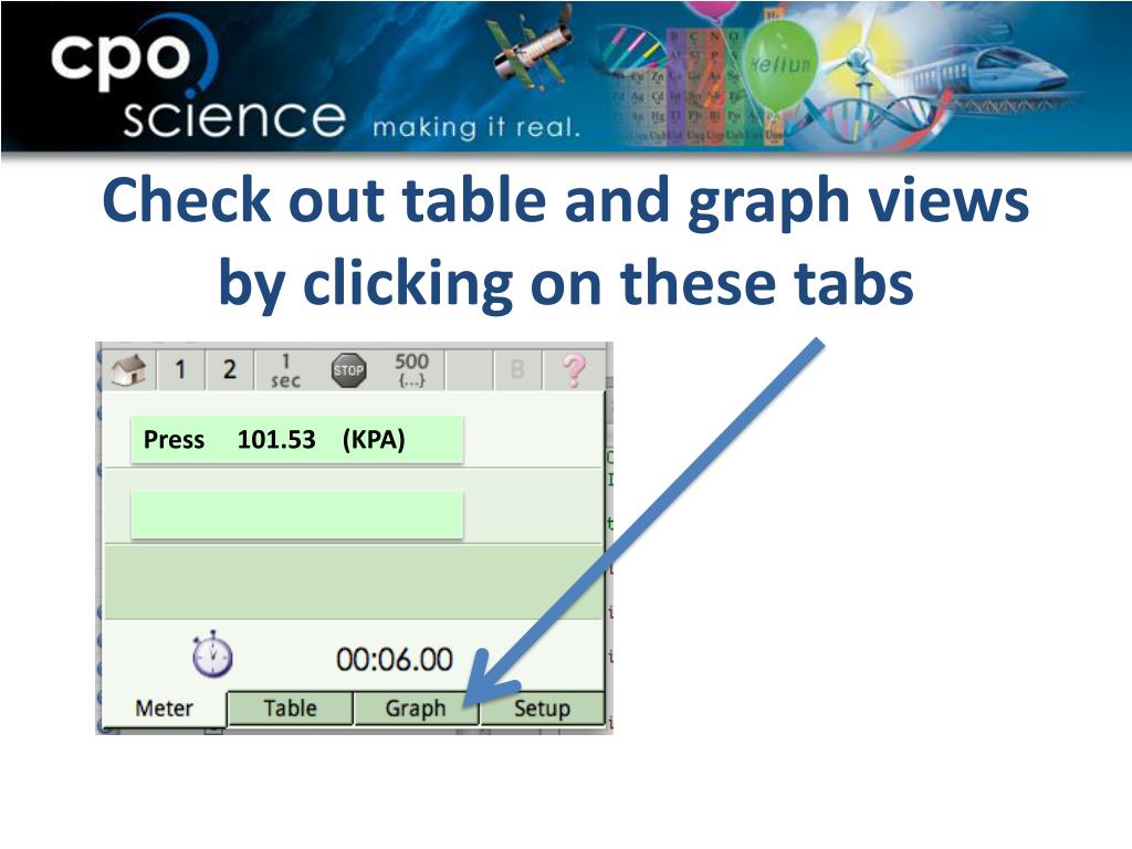 Check out table and graph views by clicking on these tabs Press 101.53 (KPA)