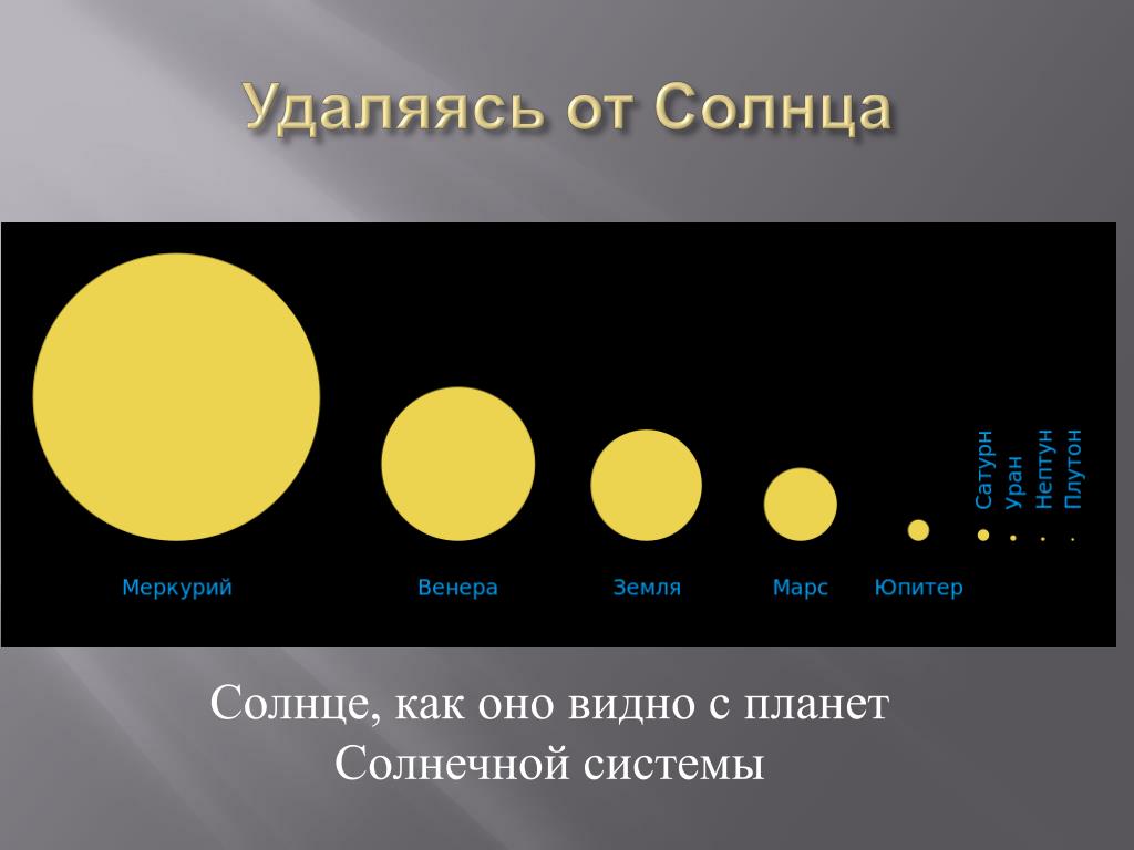 Удаляясь от Солнца Солнце, как оно видно с планет Солнечной системы