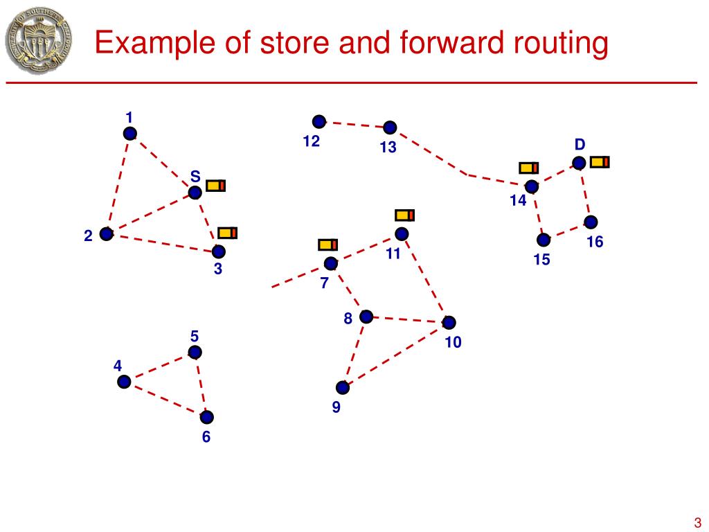Example of store and forward routing 1 12 D 13 S 14 2 16 11 15 3 7 8 5 10 4 9 6