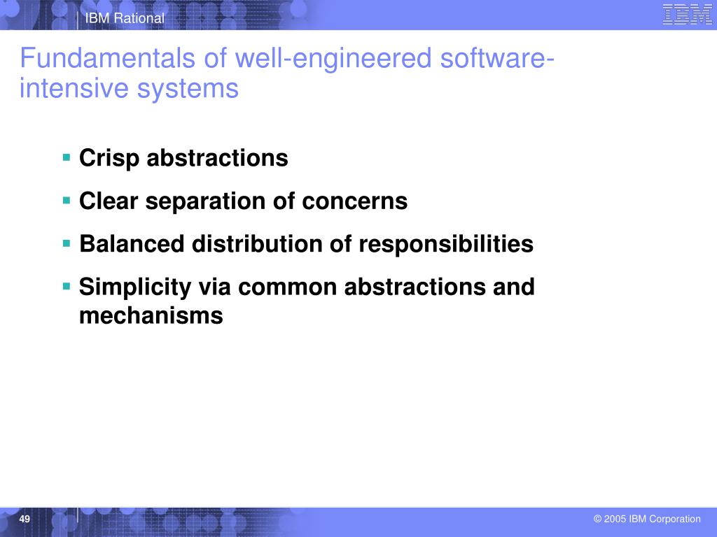 Fundamentals of well-engineered software-intensive systems • Crisp abstractions • Clear separation of concerns • Balanced distribution of responsibilities • Simplicity via common abstractions and mechanisms