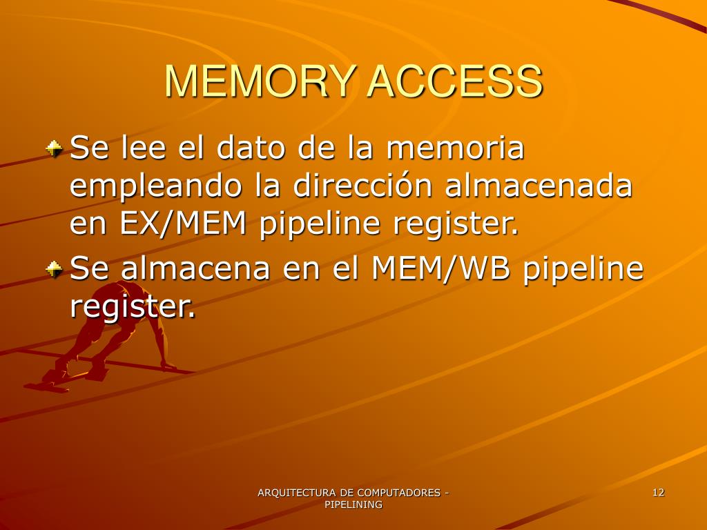 MEMORY ACCESS • Se lee el dato de la memoria empleando la dirección almacenada en EX/MEM pipeline register. • Se almacena en el MEM/WB pipeline register. ARQUITECTURA DE COMPUTADORES - PIPELINING