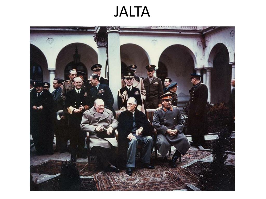 1945. JALTA • Jóvátétel: A német gyárak leszerelése és elszállítása. • A SZU. Távol-keleti érdekszférájának jóváhagyása / Mongólia, Csendes óceáni kikötők, Dél-Szahalin, Karib- szk. / cserébe SZU Hadba lép japán ellen. • Lengyelország nyugati határáról később /!/ intézkednek.