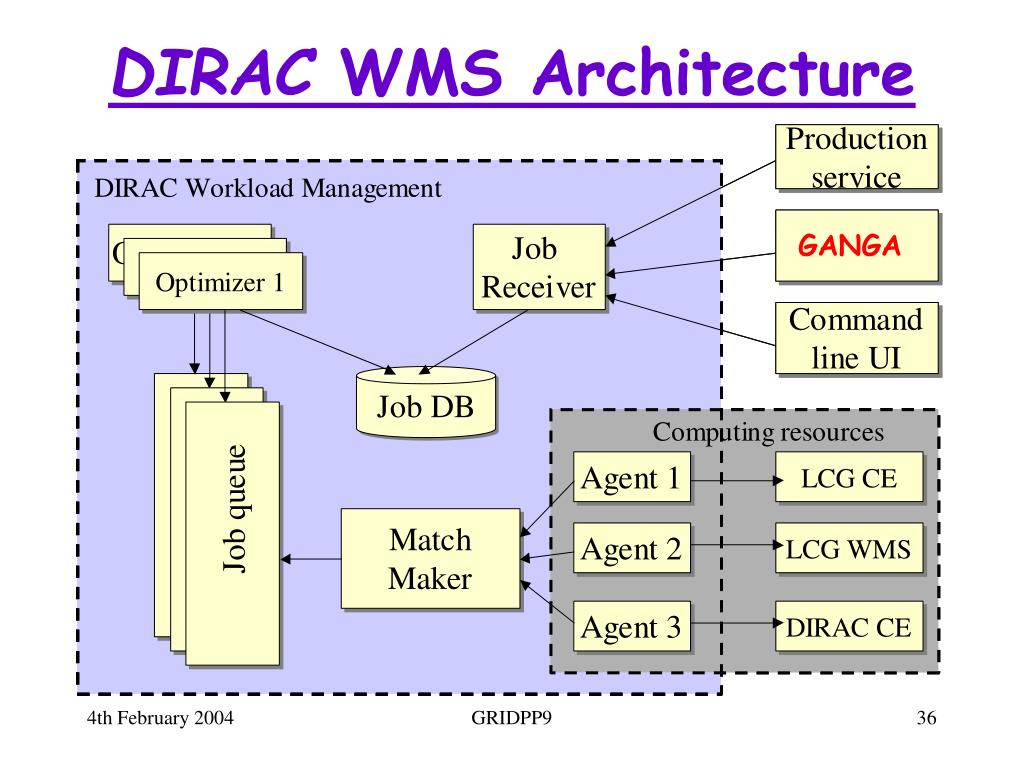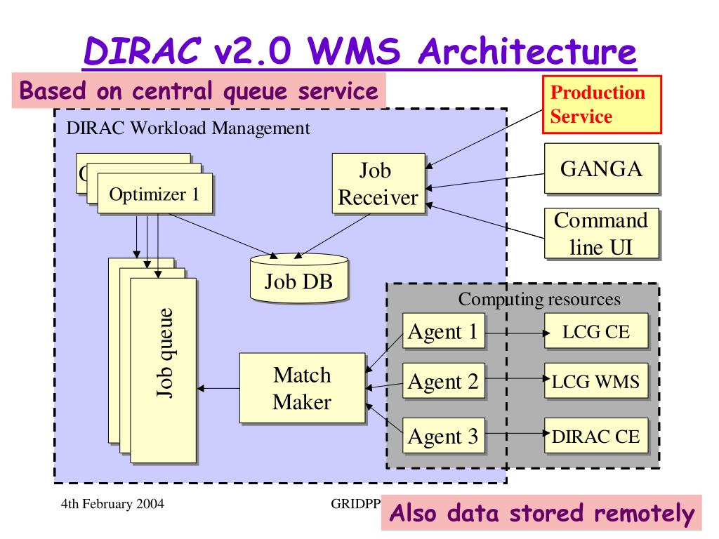 DIRAC v2.0 WMS Architecture Based on central queue service Production Service GRIDPP9 Also data stored remotely