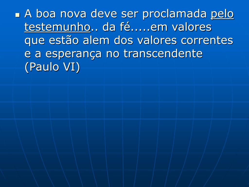 A boa nova deve ser proclamada pelo testemunho.. da fé.....em valores que estão alem dos valores correntes e a esperança no transcendente (Paulo VI)