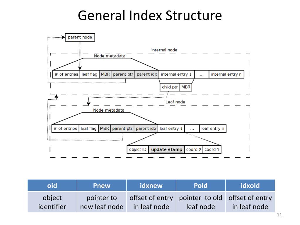 Background: Bottom-up Updates • Efficient updates: no top-down traversal • Secondary index on oid