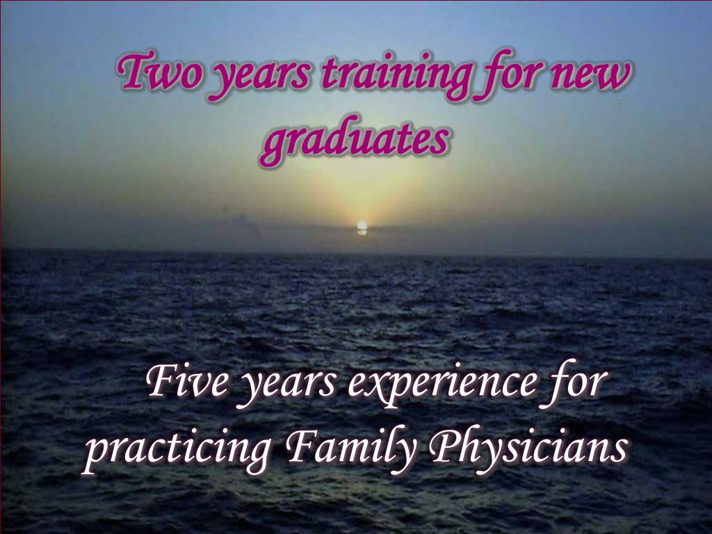 Two years training for new graduates Five years experience for practicing Family Physicians