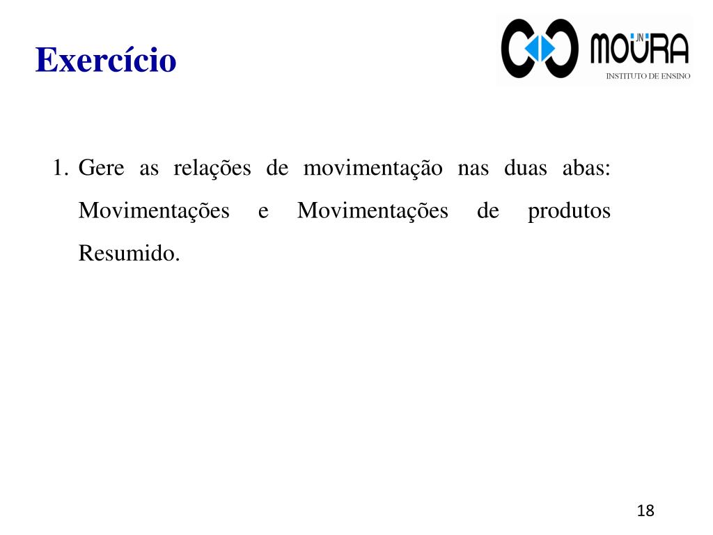 Exercício Gere as relações de movimentação nas duas abas: Movimentações e Movimentações de produtos Resumido.
