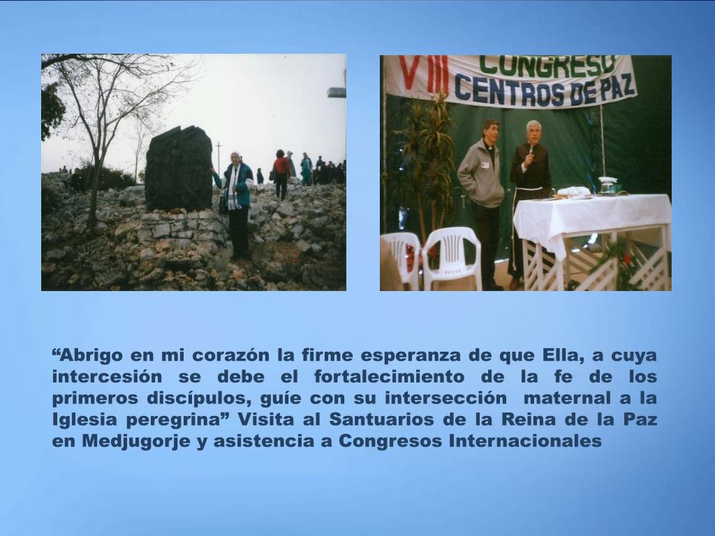 “Abrigo en mi corazón la firme esperanza de que Ella, a cuya intercesión se debe el fortalecimiento de la fe de los primeros discípulos, guíe con su intersección maternal a la Iglesia peregrina” Visita al Santuarios de la Reina de la Paz en Medjugorje y asistencia a Congresos Internacionales
