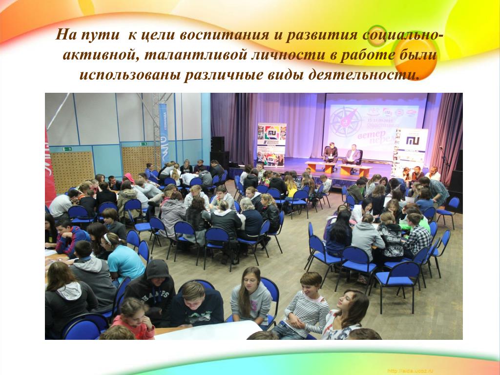 На пути к цели воспитания и развития социально-активной, талантливой личности в работе были использованы различные виды деятельности.