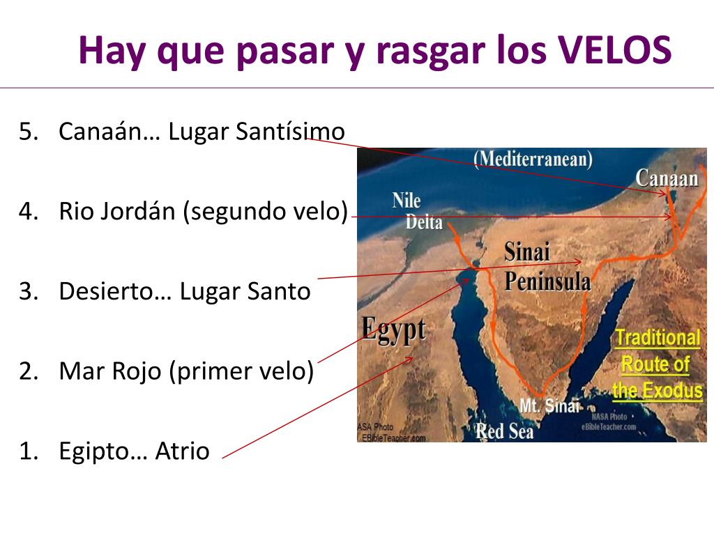 Hay que pasar y rasgar los VELOS 5. Canaán… Lugar Santísimo 4. Rio Jordán (segundo velo) 3. Desierto… Lugar Santo 2. Mar Rojo (primer velo) 1. Egipto… Atrio