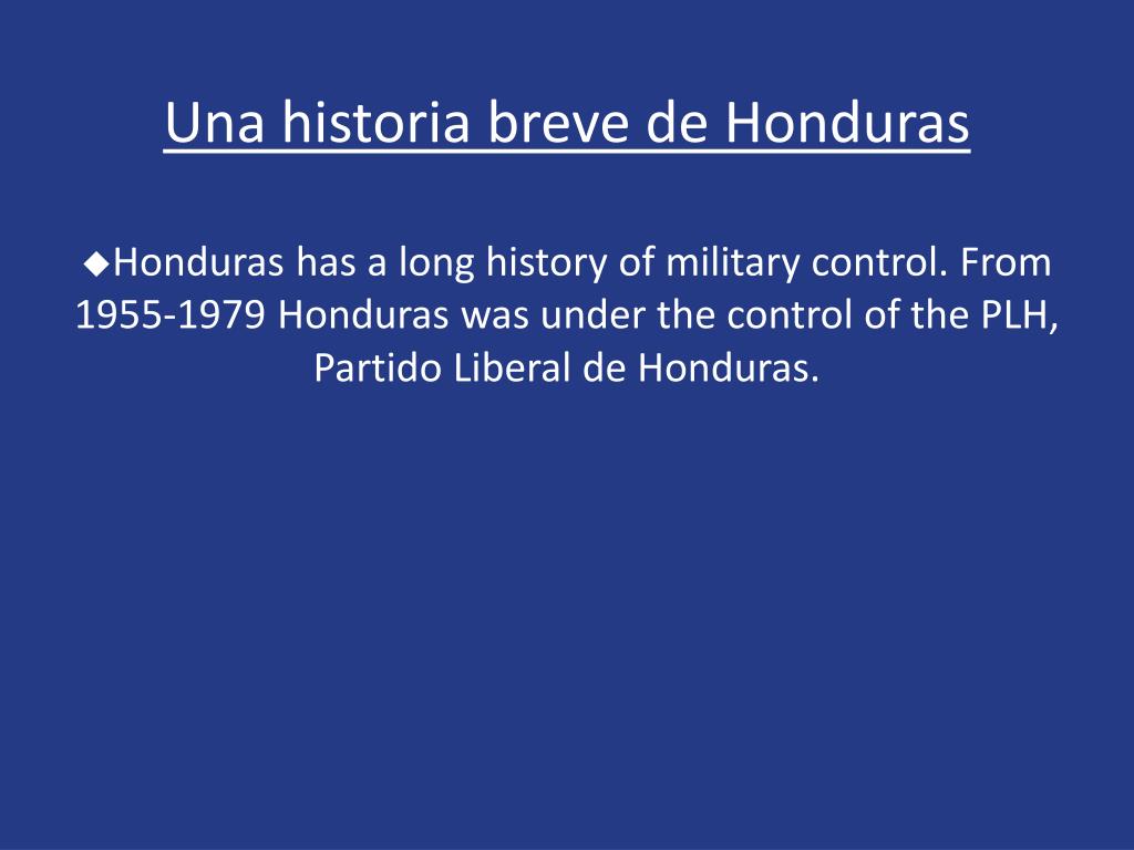 Unahistoriabreve de HondurasHonduras has a long history of military control. From 1955-1979 Honduras was under the control of the PLH, Partido Liberal de Honduras.