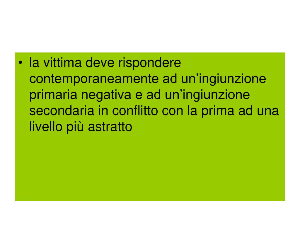 la vittima deve rispondere contemporaneamente ad un’ingiunzione primaria negativa e ad un’ingiunzione secondaria in conflitto con la prima ad una livello più astratto