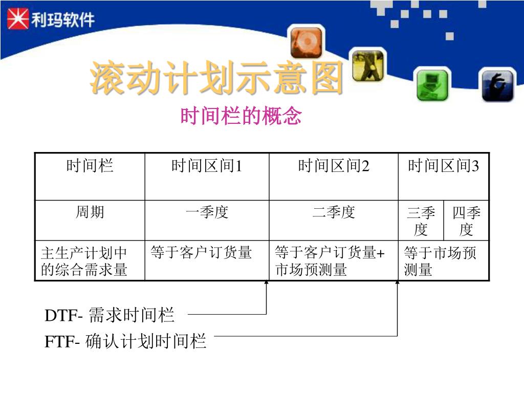 滚动计划示意图 时间栏的概念 DTF- 需求时间栏 FTF- 确认计划时间栏