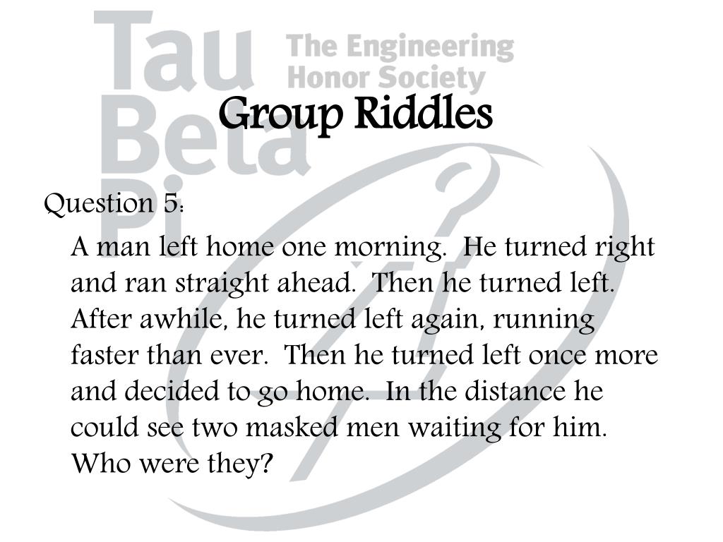 Group Riddles Answer: The man himself was the baseball player. The two masked men were the umpire and the other team’s catcher.