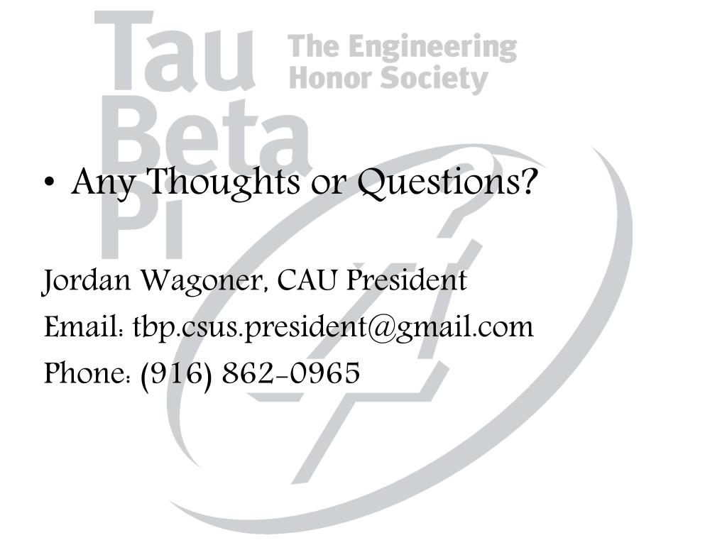 Any Thoughts or Questions? Jordan Wagoner, CAU President Email: tbp.csus.president@gmail.com Phone: (916) 862-0965