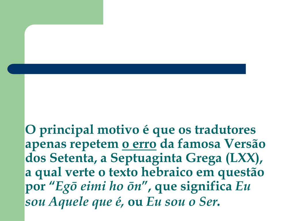 O principal motivo é que os tradutores apenas repetem o erro da famosa Versão dos Setenta, a Septuaginta Grega (LXX), a qual verte o texto hebraico em questão por “Egō eimi ho ōn”, que significa Eu sou Aquele que é, ou Eu sou o Ser.