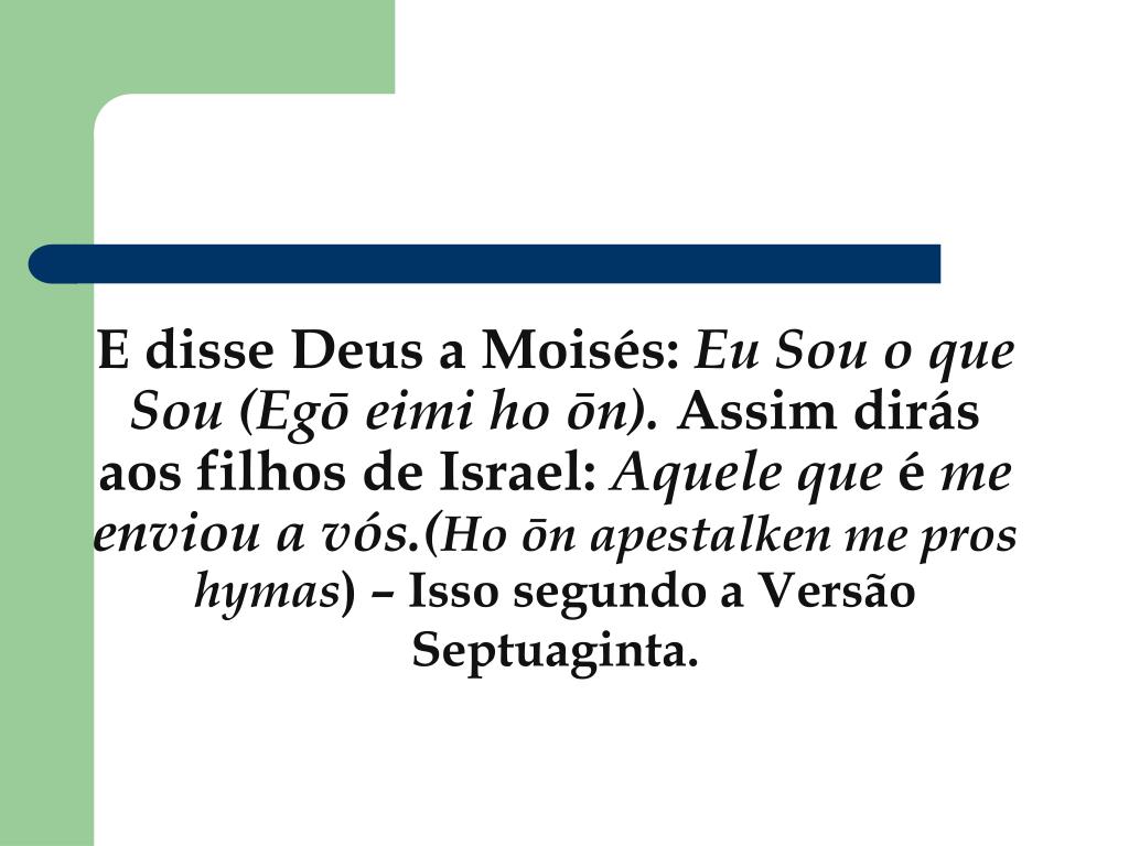 E disse Deus a Moisés: Eu Sou o que Sou (Egō eimi ho ōn). Assim dirás aos filhos de Israel: Aquele que é me enviou a vós.(Ho ōnapestalken me pros hymas) – Isso segundo a Versão Septuaginta.