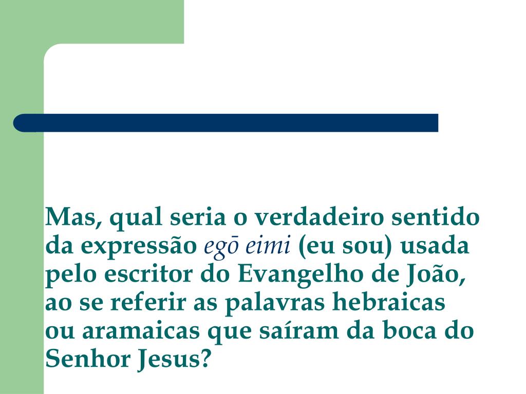 Mas, qual seria o verdadeiro sentido da expressão egō eimi (eu sou) usada pelo escritor do Evangelho de João, ao se referir as palavras hebraicas ou aramaicas que saíram da boca do Senhor Jesus?