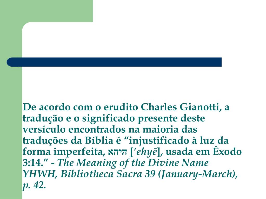 De acordo com o erudito Charles Gianotti, a tradução e o significado presente deste versículo encontrados na maioria das traduções da Bíblia é “injustificado à luz da forma imperfeita, היהא [’ehyē], usada em Êxodo 3:14.” - The Meaning of the Divine Name YHWH, Bibliotheca Sacra 39 (January-March), p. 42.