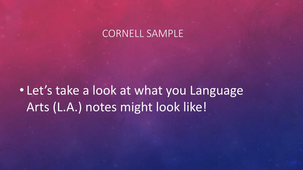 Cornell Sample • Let’s take a look at what you Language Arts (L.A.) notes might look like!