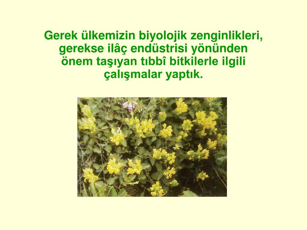 Gerek ülkemizin biyolojik zenginlikleri, gerekse ilâç endüstrisi yönünden önem taşıyan tıbbî bitkilerle ilgili çalışmalar yaptık.