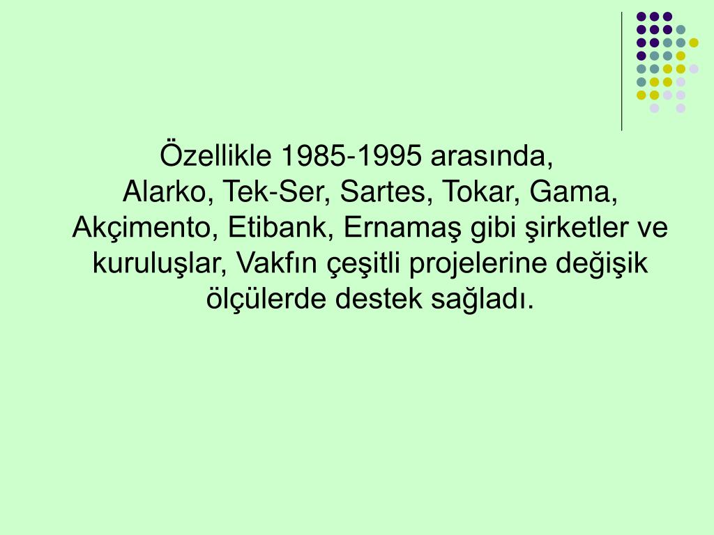 Özellikle 1985-1995 arasında, Alarko, Tek-Ser, Sartes, Tokar, Gama, Akçimento, Etibank, Ernamaş gibi şirketler ve kuruluşlar, Vakfın çeşitli projelerine değişik ölçülerde destek sağladı.