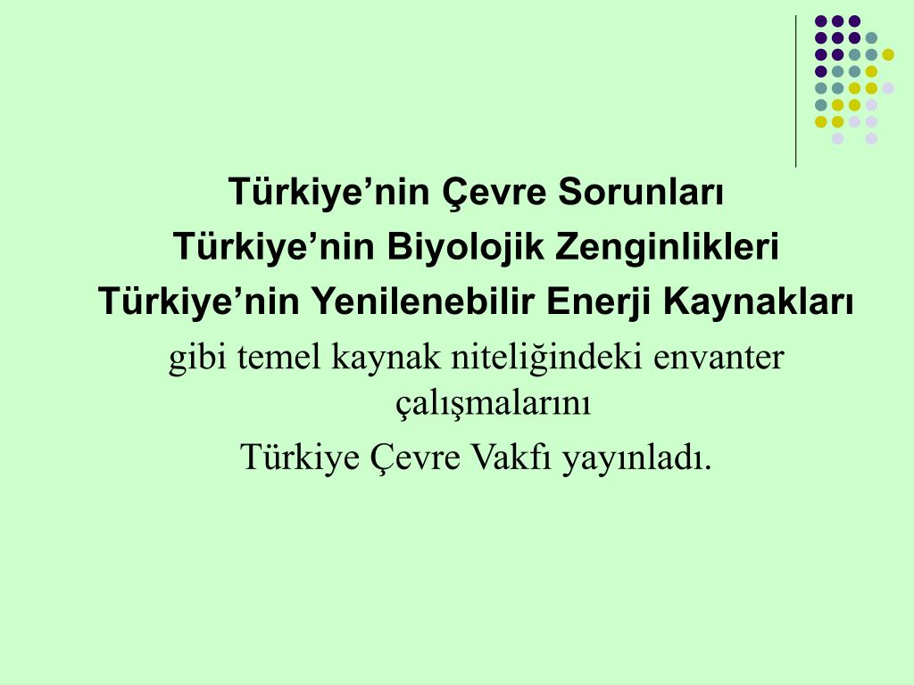Türkiye’nin Çevre Sorunları Türkiye’nin Biyolojik Zenginlikleri Türkiye’nin Yenilenebilir Enerji Kaynakları gibi temel kaynak niteliğindeki envanter çalışmalarını Türkiye Çevre Vakfı yayınladı.