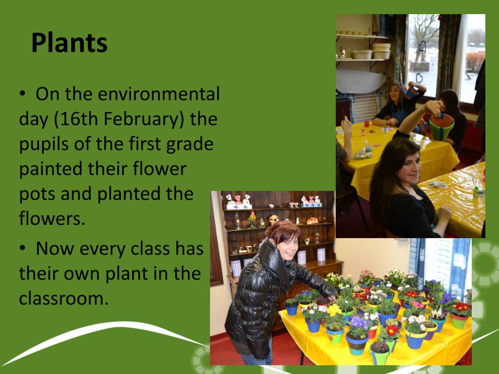 Plants On the environmentalday (16th February) the pupils of the firstgradepaintedtheirflower pots and planted the flowers. Noweveryclass has theirown plant in the classroom.