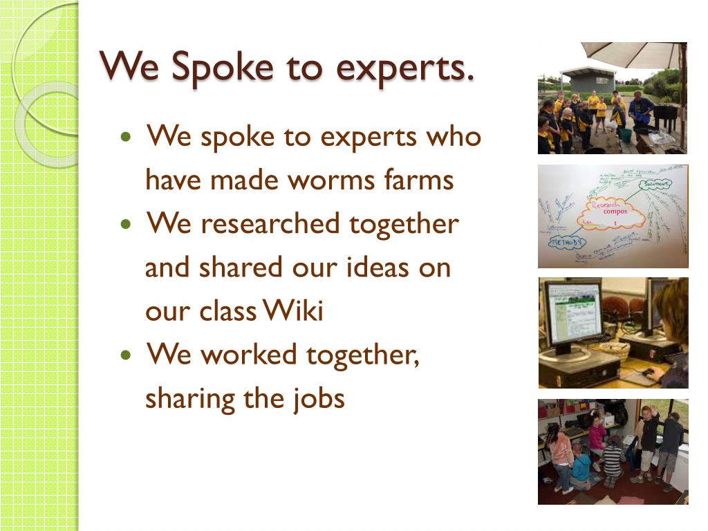 We Spoke to experts. • We spoke to experts who have made worms farms • We researched together and shared our ideas on our class Wiki • We worked together, sharing the jobs compost