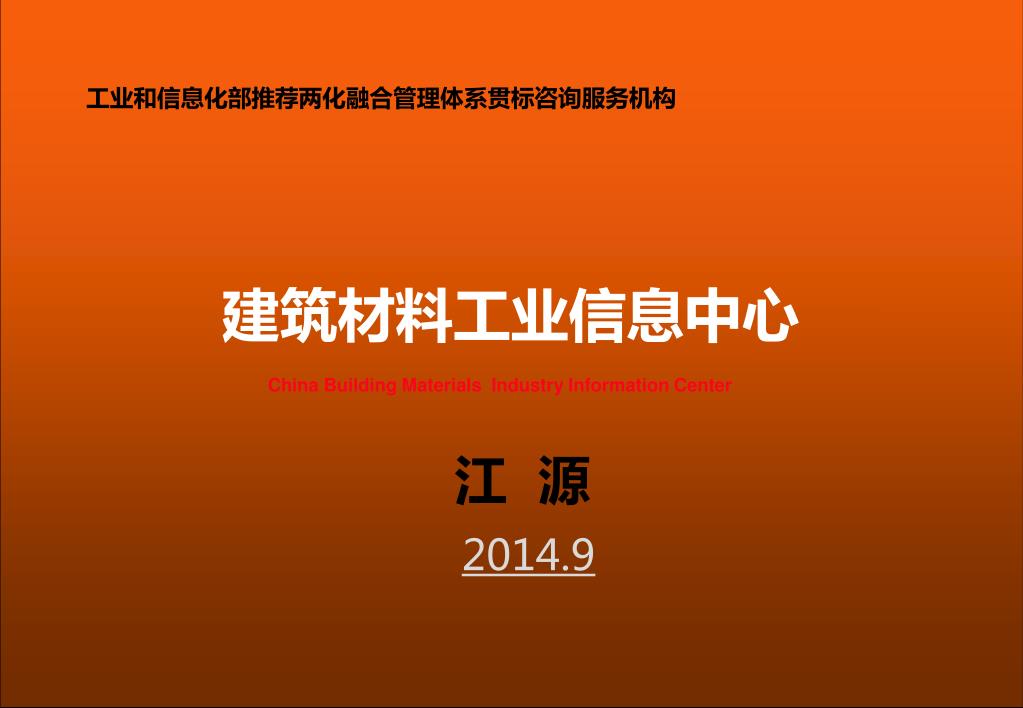 建筑材料工业信息中心 工业和信息化部推荐两化融合管理体系贯标咨询服务机构 China Building Materials Industry Information Center 江 源 2014.9