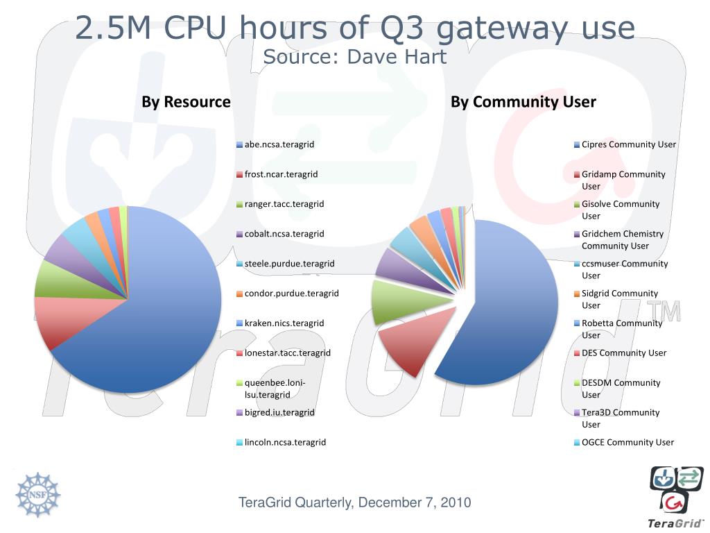 2.5M CPU hours of Q3 gateway useSource: Dave Hart TeraGrid Quarterly, December 7, 2010