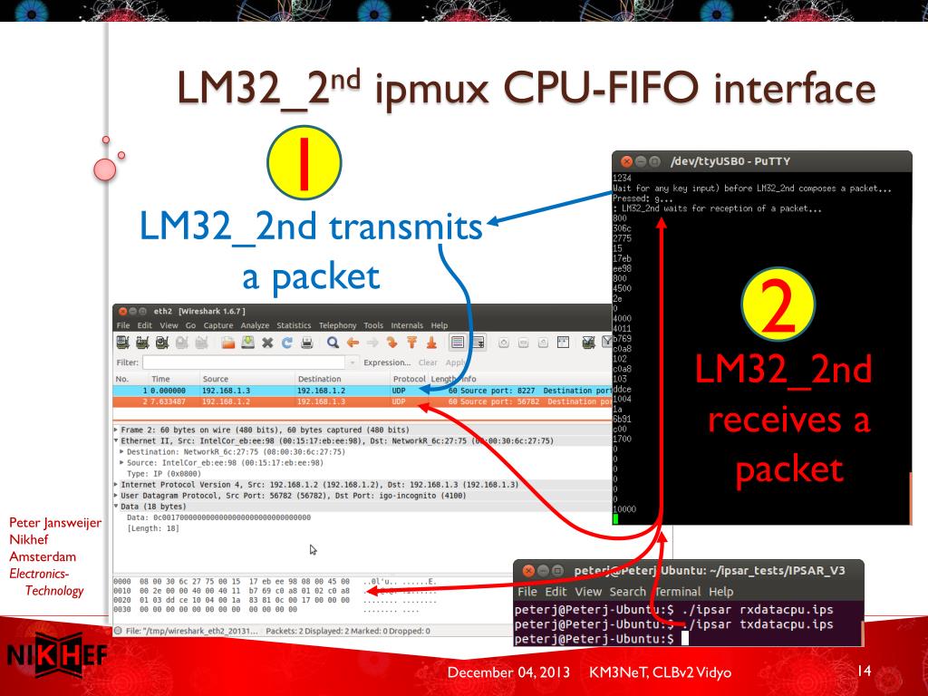 KM3NeT CLBv2. First ping!. Thanks to Vincent:. UDP Packet Transmit/Receive LM32_2 nd ipmux interface. 31 TDCs. IP/UDP Packet Buffer Stream Selector (IPMUX). Start Time Slice UTC & Offset counter since. Fifo. TDC0. Time Slice Start. RxPort 1. RxPacket Buffer 64KB. 31 PMTs.