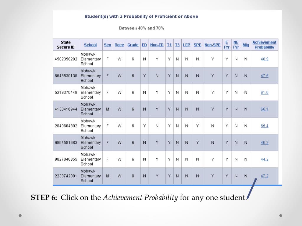 STEP 6: Click on the Achievement Probability for any one student.