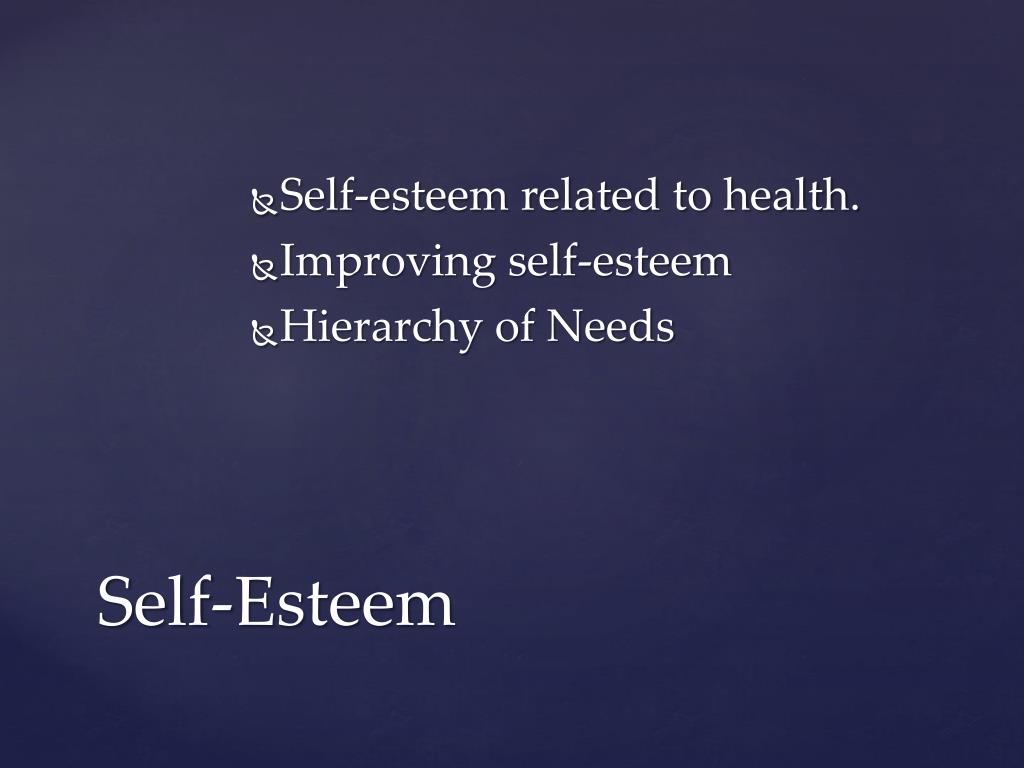 Self-esteem related to health. • Improving self-esteem • Hierarchy of Needs Self-Esteem