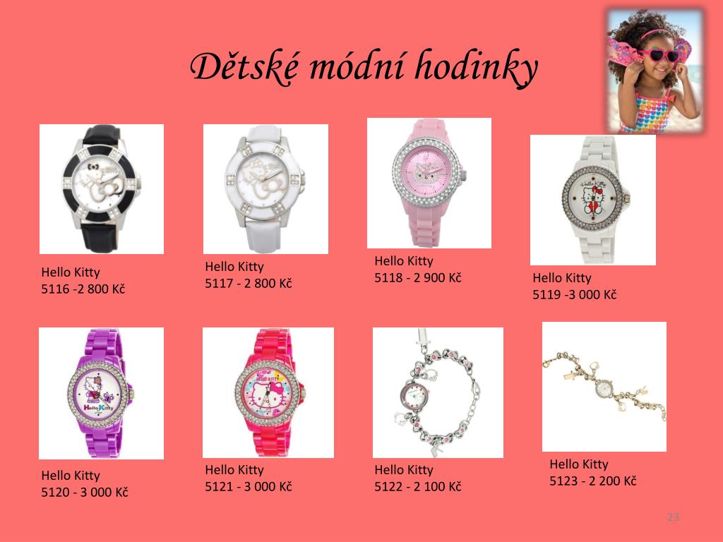 Dětské módní hodinky HelloKitty 5118 - 2 900 Kč HelloKitty 5117 - 2 800 Kč HelloKitty 5116 -2 800 Kč HelloKitty 5119 -3 000 Kč HelloKitty 5123 - 2 200 Kč HelloKitty 5121 - 3 000 Kč HelloKitty 5122 - 2 100 Kč HelloKitty 5120 - 3 000 Kč