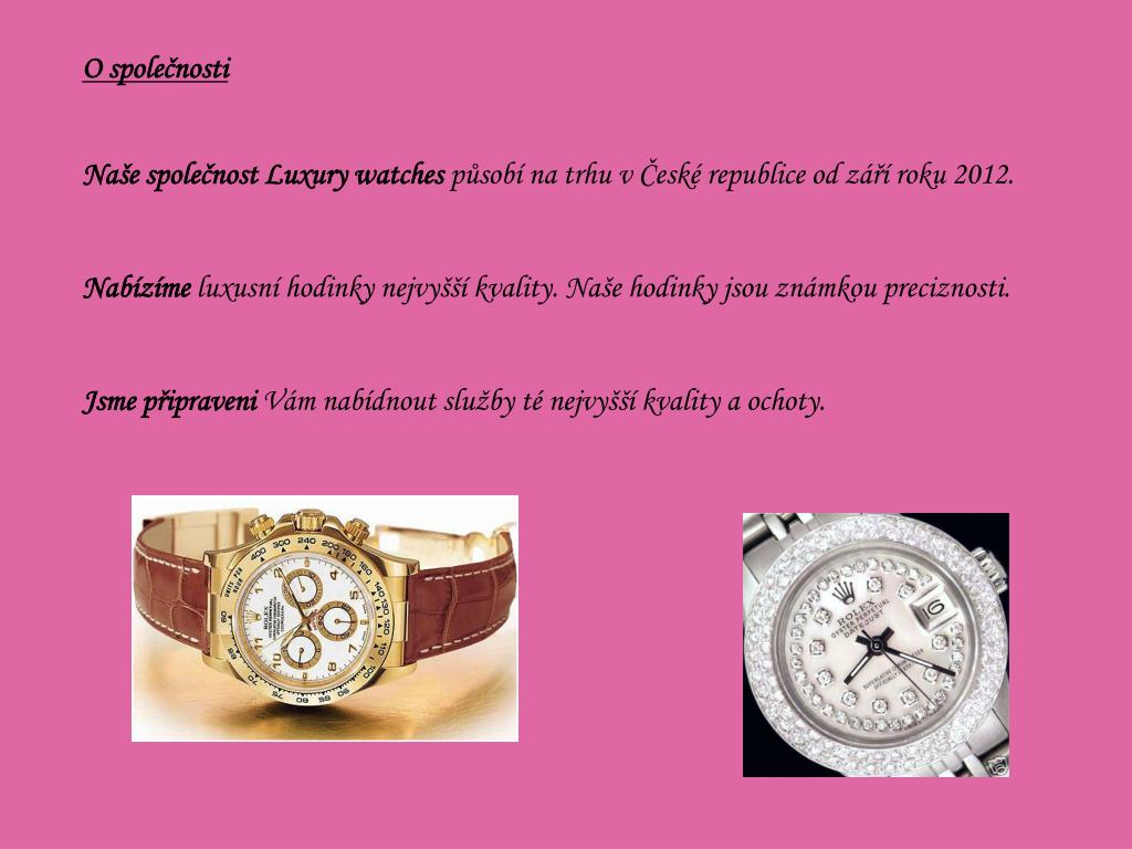 FF Luxurywatches, s. r. o. „Naše hodinky jsou přesností Vašeho života“. O společnosti. Naše společnost Luxury watches působí na trhu v České republice od září roku 2012. Nabízíme luxusní hodinky nejvyšší kvality. Naše hodinky jsou známkou preciznosti.