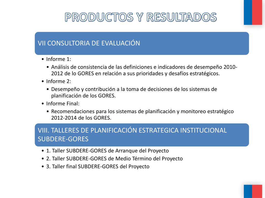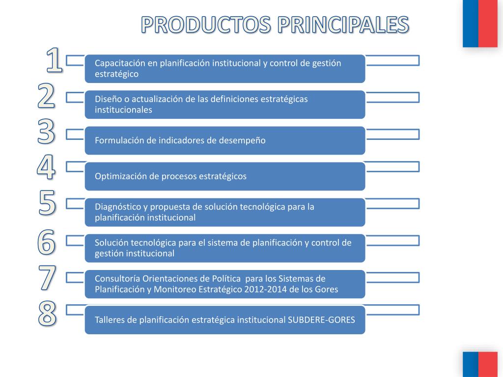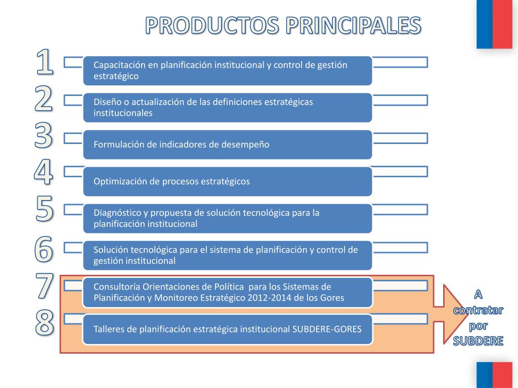 PRODUCTOS PRINCIPALES 1 2 3 4 5 6 7 A contratar por SUBDERE 8