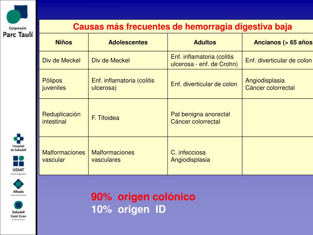 Concepto • Hemorragia digestiva baja: a aquella que se origina en lesiones situadas distalmente al ligamento de Treitz. • Epidemiología: HDA HD 20--- 30 pacientes /100.000 hab. año 20% Lanas, Am J Gastroenterol. 2010