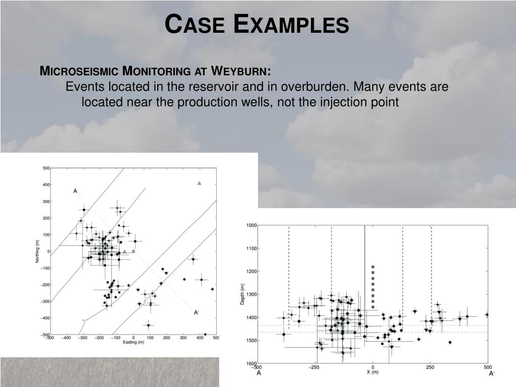 Case Examples • Microseismic Monitoring at Weyburn: • Events located in the reservoir and in overburden. Many events are located near the production wells, not the injection point