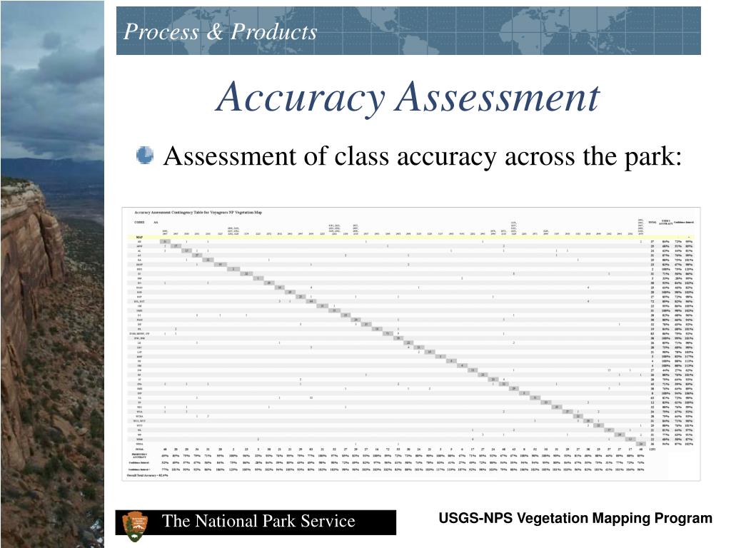 Process & Products Accuracy Assessment • Assessment of class accuracy across the park: