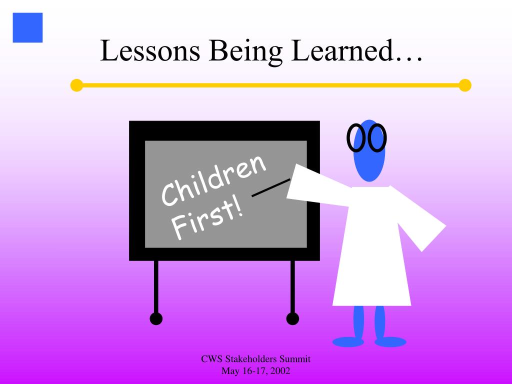 Lessons Being Learned LessonsBeing Learned! CWS Stakeholders Summit May 16-17, 2002