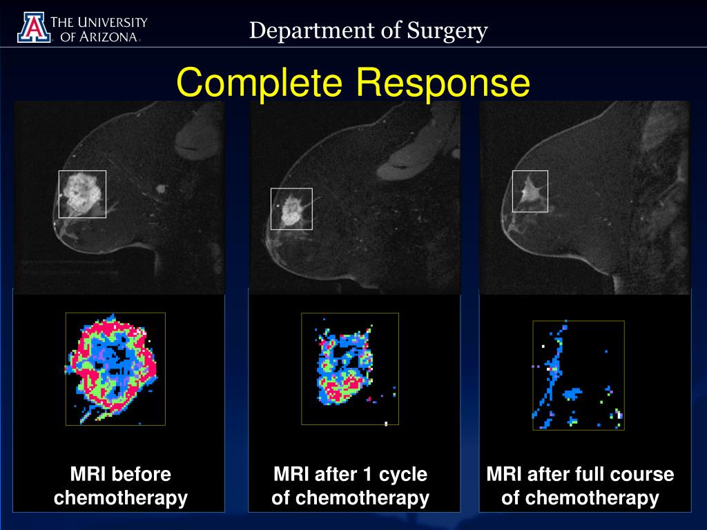 Complete Response MRI before chemotherapy MRI after 1 cycle of chemotherapy MRI after full course of chemotherapy