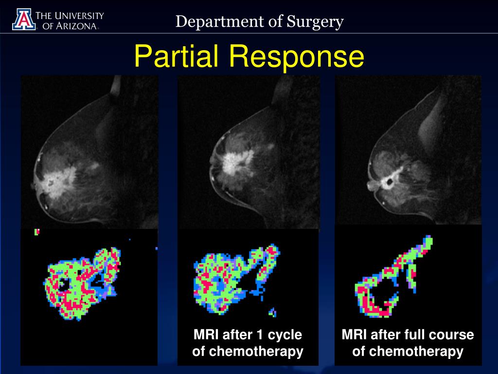 Partial Response MRI before chemotherapy MRI after 1 cycle of chemotherapy MRI after full course of chemotherapy