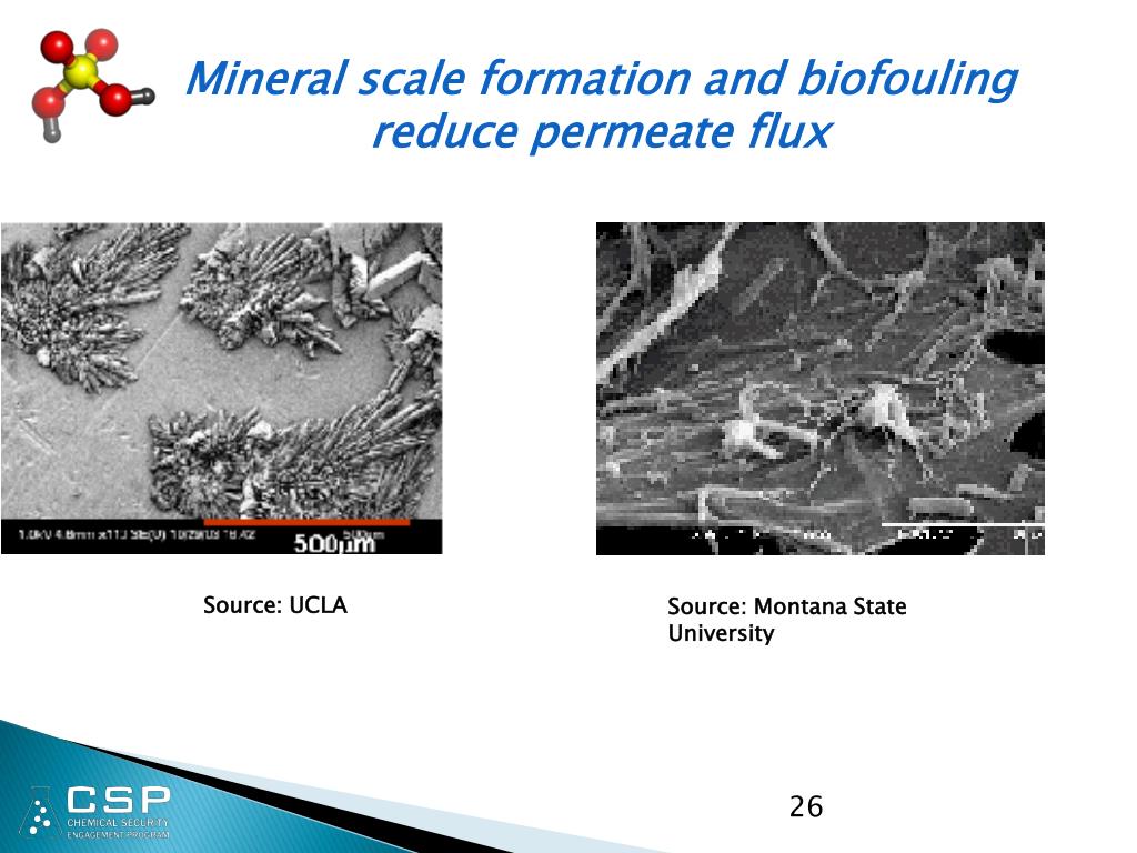 26 Mineral scale formation and biofouling reduce permeate flux Source: UCLA Source: Montana State University