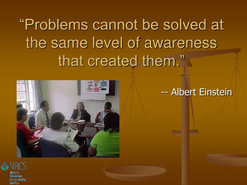 “Problems cannot be solved at the same level of awareness that created them.” -- Albert Einstein