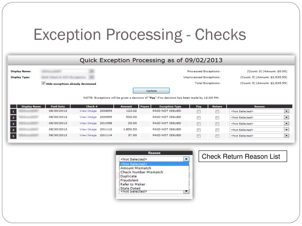 Exception Processing - Checks Check Return Reason List