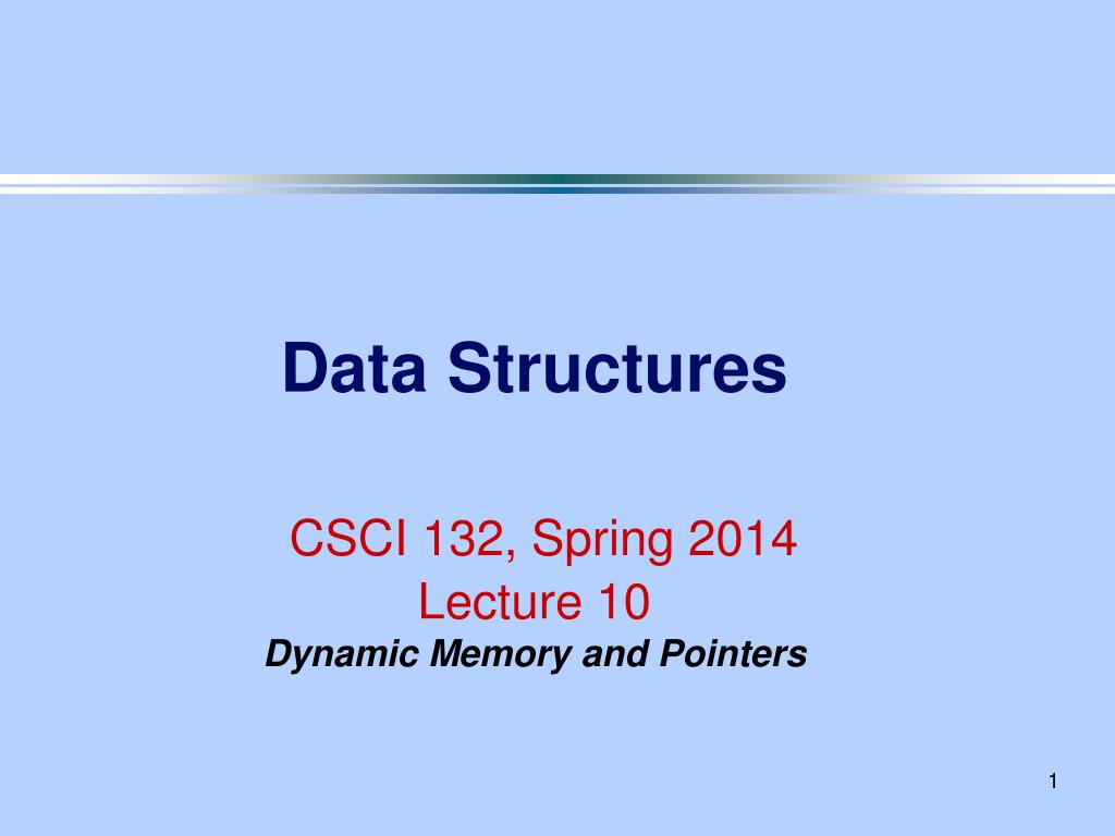 Data StructuresCSCI 132, Spring 2014Lecture 10Dynamic Memory and Pointers