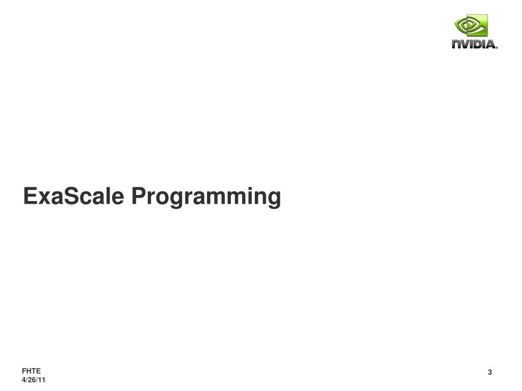 From Here to ExaScale Challenges and Potential Solutions. Bill Dally Chief Scientist, NVIDIA Bell Professor of Engineering, Stanford University. Two Key Challenges. Programmability Writing an efficient parallel program is hard Strong scaling required to achieve ExaScale