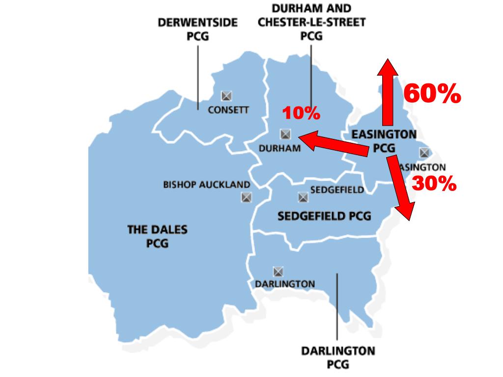 Example 2 • Durham and Tees Valley • New StHA 3 weeks old • 6 acute hospitals • 10 PCTs • Tertiary centres in Teesside and Newcastle • 2nd major reorganisation happens in the middle of the project! • Typical of one sort of diversity in the UK